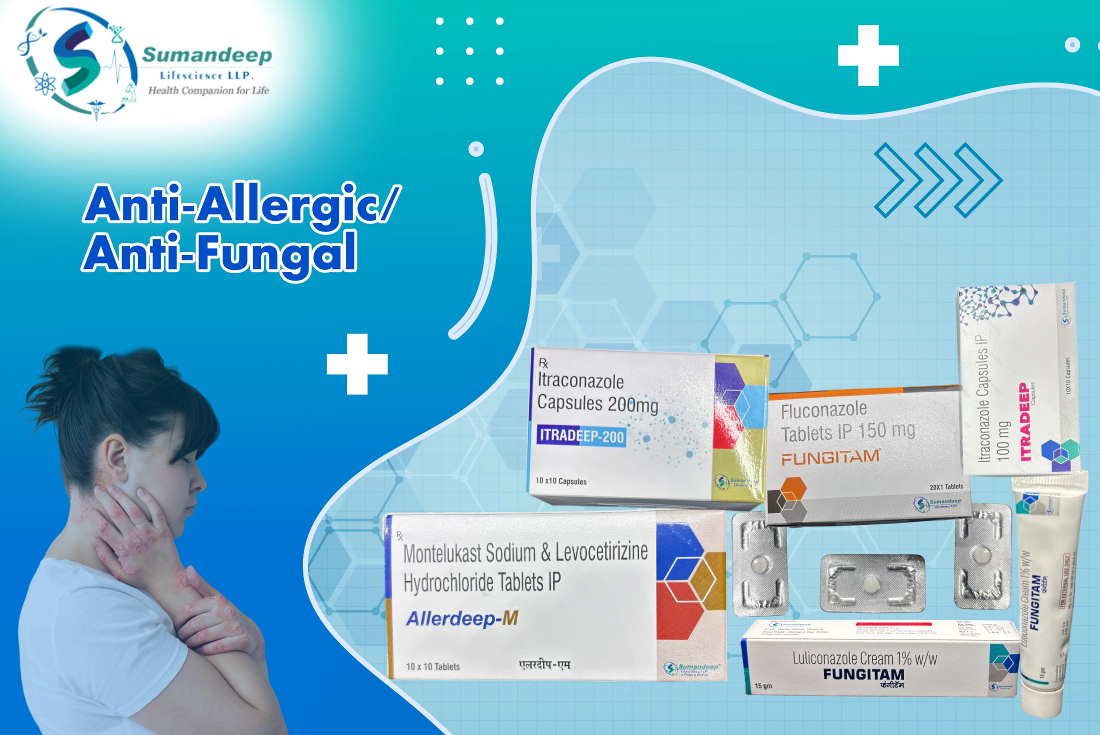 These medications are specifically designed to combat a range of conditions caused by allergic reactions or fungal infections. Anti-allergic medications, like Allerdeep-M, often contain a combination of ingredients that work to relieve symptoms such as sneezing, itching, and a runny nose by blocking the body's histamine response.