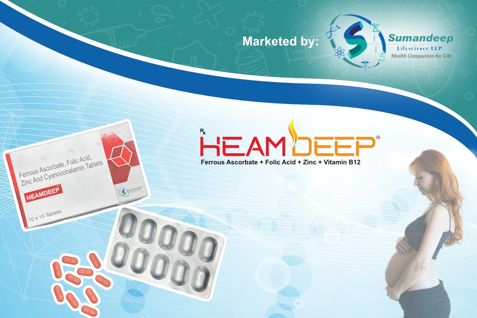 HEAMDEEP® is Ferrous Ascorbate, Folic Acid, Zinc, and Cyanocobalamin Tablets (such as the brand HEAMDEEP) are a type of nutritional supplement.