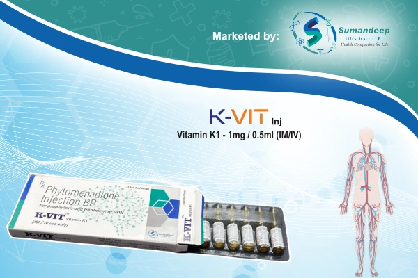 K-VIT Injection (Vitamin K1) is used to manage and relieve symptoms related to Vitamin K deficiency and bleeding disorders. Recognizing these symptoms early aids in timely intervention and effective treatment.