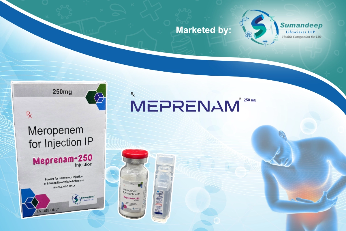 Available in 250 mg, 500 mg, and 1000 mg strengths, Meprenam is administered intravenously to ensure quick and effective delivery of the medication to the infection site. Its potent action helps in managing complicated intra-abdominal, respiratory, urinary tract, skin, and soft tissue infections.