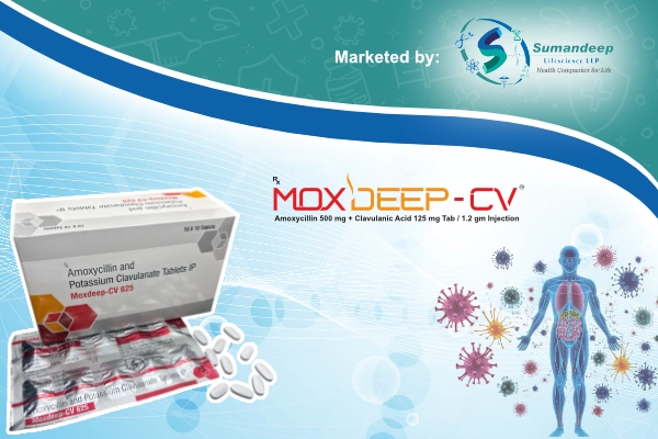 Moxdeep CV 625 contain Amoxicillin and Potassium Clavulanate Tablets IP is a powerful antibiotic medication that is a combination of two active ingredients: amoxicillin and potassium clavulanate. Amoxicillin is a type of penicillin antibiotic that works by stopping the growth of bacteria, while potassium clavulanate is a beta-lactamase inhibitor that prevents certain bacteria from destroying the amoxicillin, making the antibiotic more effective.
