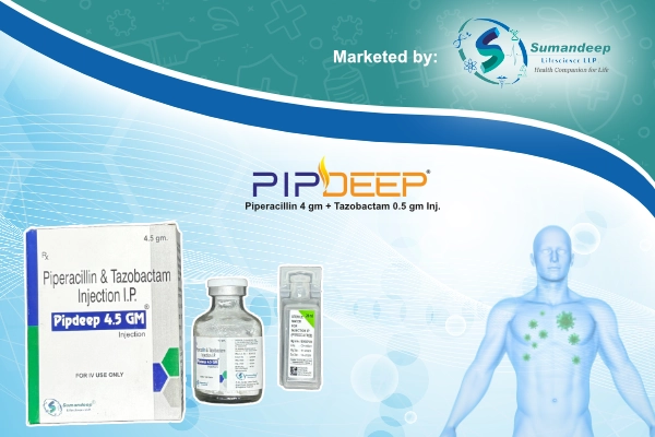 PIPDEEP 4.5 gm is administered intravenously under medical supervision, ensuring rapid and targeted treatment. Manufactured with strict quality standards, it is a trusted choice for doctors managing patients with severe or life-threatening infections.