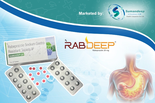RABDEEP-20 is medication containing the active ingredient rabeprazole sodium. It belongs to a class of drugs known as Proton Pump Inhibitors (PPIs). These medications work by a powerful mechanism to reduce the amount of acid produced in the stomach, providing relief for a variety of acid-related conditions.